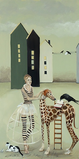 Virtuose de l'imaginaire, elle se plait à inventer des univers étonnants où des personnages étranges se font découvrir par ses oeuvres. Elle transpose en images un monde fantaisiste sans frontière entre le réel et l'imaginaire. Ce monde qu'elle porte en elle sous forme d'histoires fabuleuses et qu'elle nous présente dans chacun de ses tableaux.